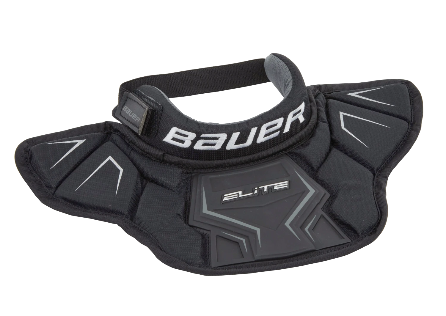 The Bauer Elite Senior Goalie Neck Guard is a great option for goalies whose league doesn’t requires them to wear a certified neck guard, but want a bit of extra collar bone protection.
