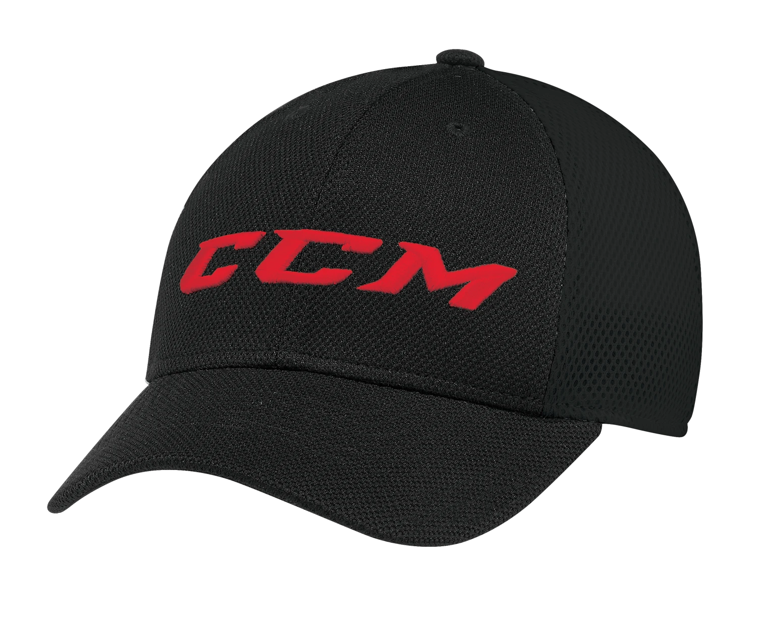 Structured flex fit, mid-crown cap with contrast color stitching. Mesh foam back panels provide added breathability.