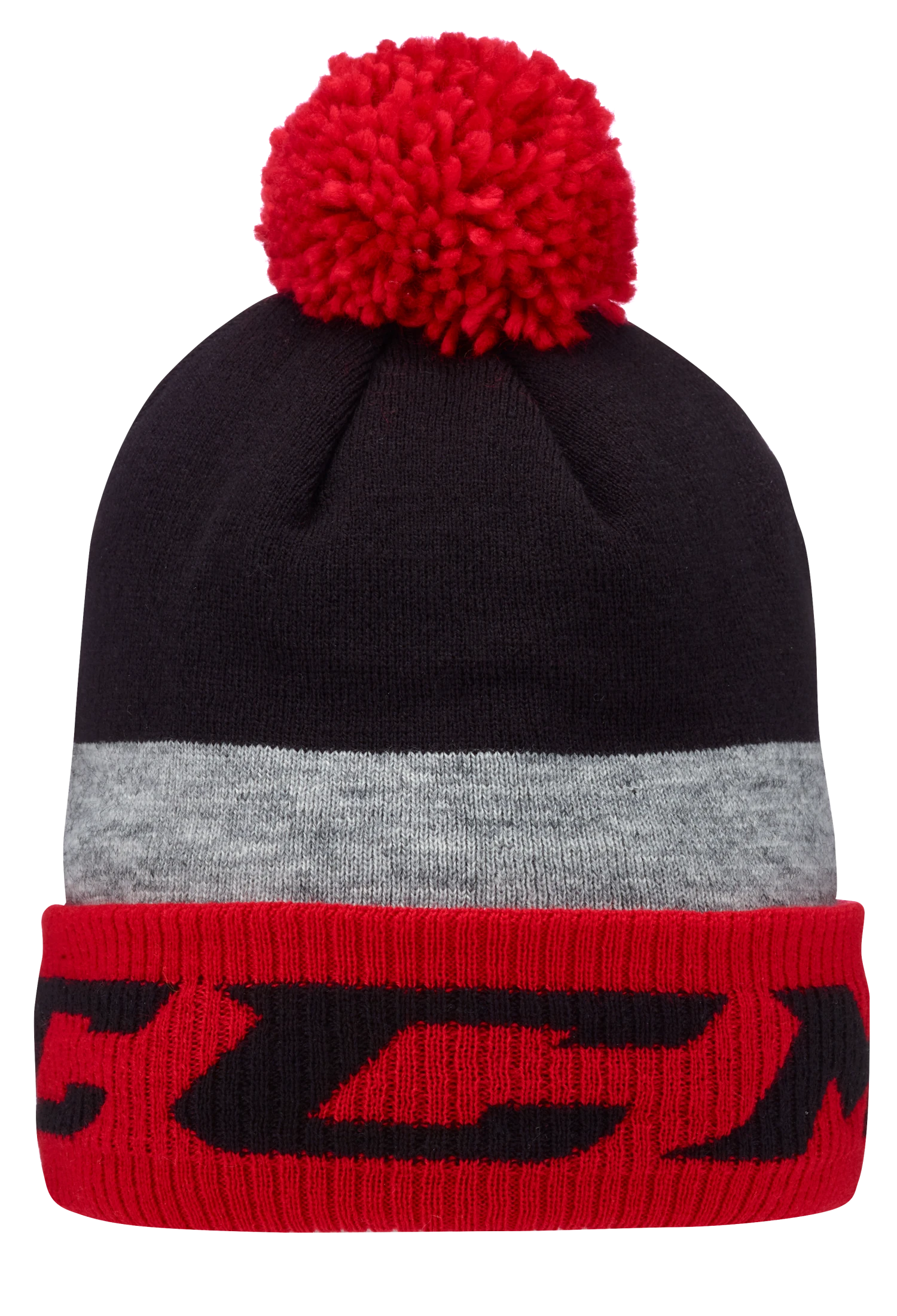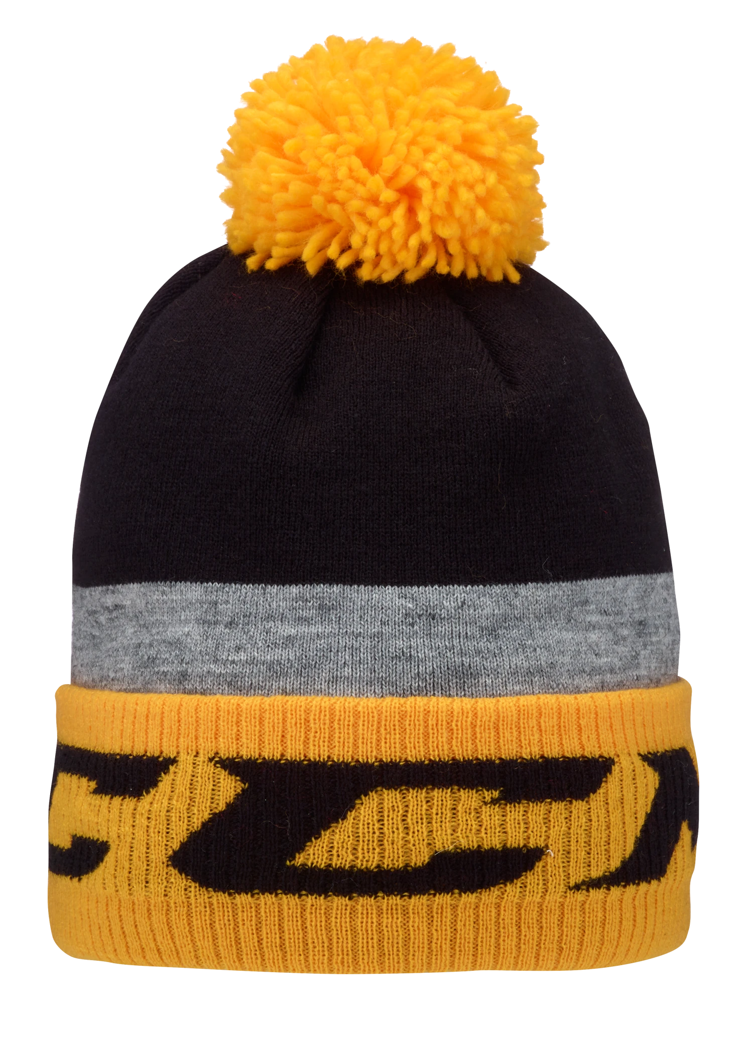Jacquard knit stripes with a soft polar fleece lining and a fine fringe pom.