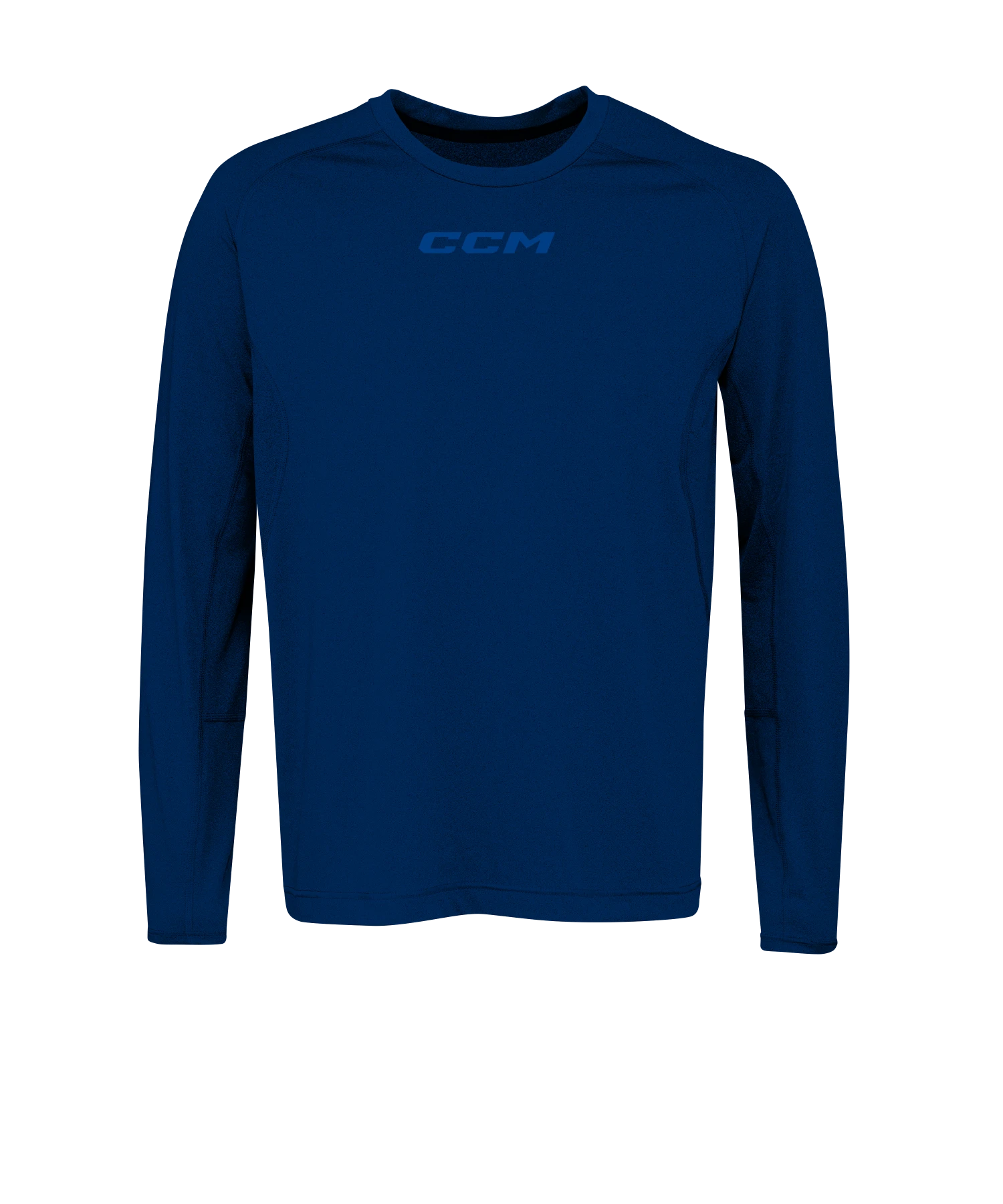 Premium long sleeve crewneck training tee made from a soft knit fabric with engineered mesh ventilation, strategically placed where breathability is needed most.